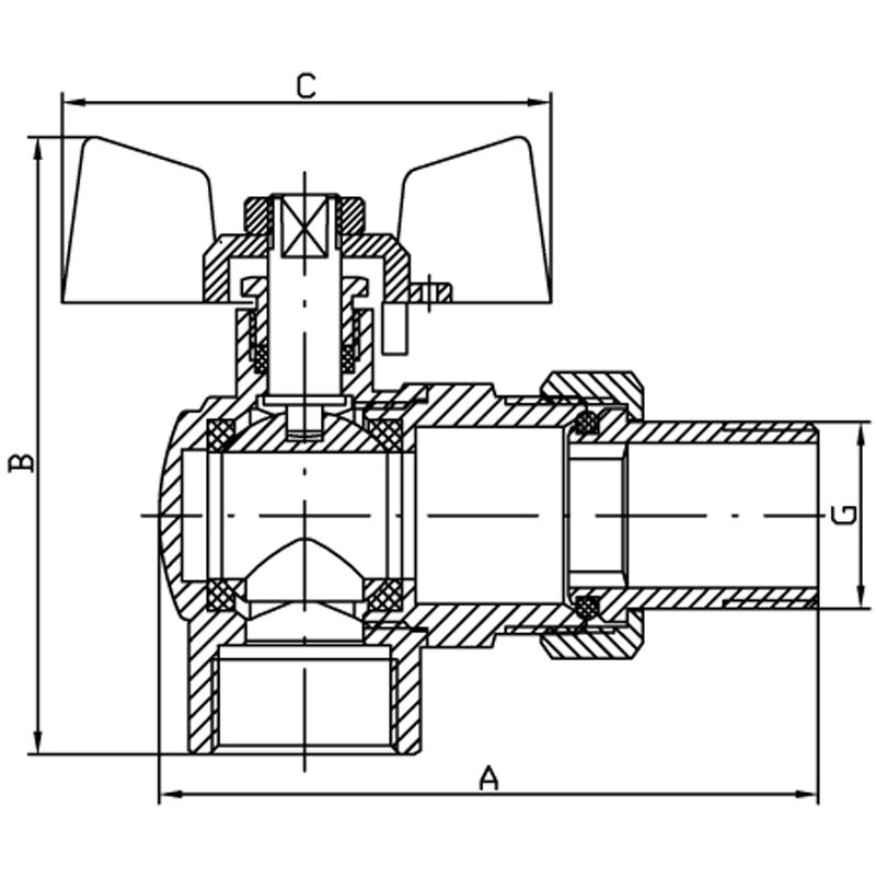 | Напрямок потоку у вентилі | Кутове |